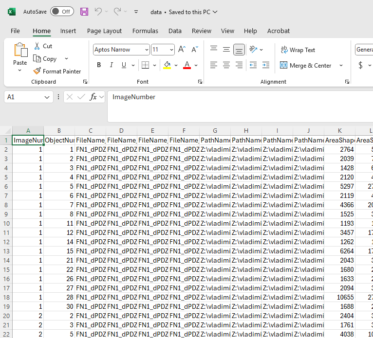 I have an output csv file from cell profiler called data.csv.